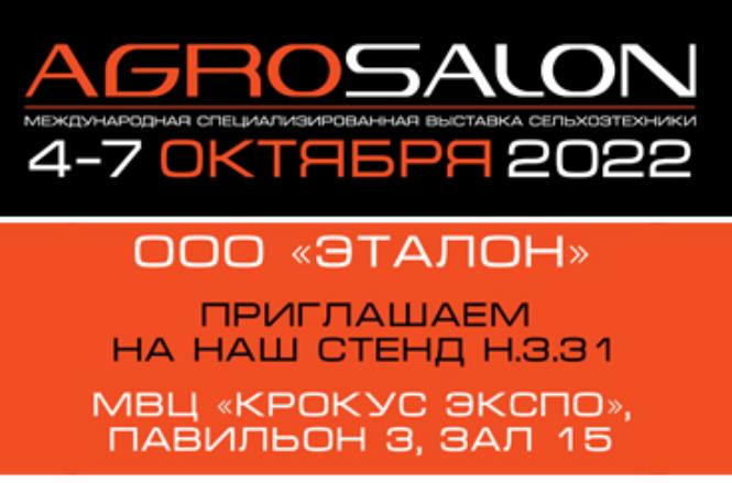 Уважаемые клиенты ООО "Эталон", ваш менеджер вышлет вам бесплатный билет на выставку АГРОСАЛОН 2022. С данным билетом Вы можете посетить выставку АГРОСАЛОН с 4 по 7 октября 2022 года. Для прохода на выставку предъявите билет на стойке online регистрации.